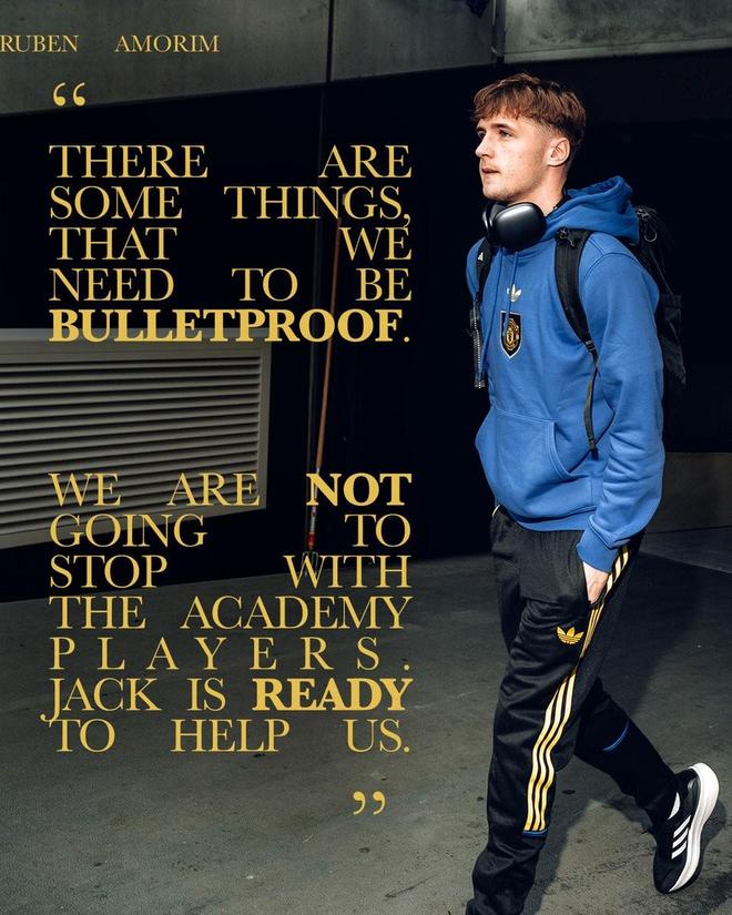 曼联官方发布的照片中,主帅阿莫林表示:“有些事情,我们必须做到无懈可击,我们不会停止培养青训球员——杰克已经准备好为球队提供帮助。”